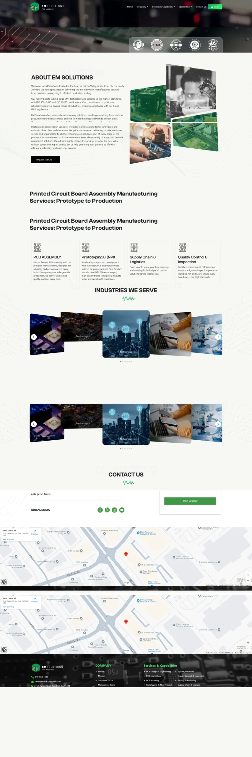 Designed to highlight EM Solutions’ expertise in high-precision PCB assembly using advanced SMT technology, the website caters to industries such as medical devices, aerospace, and telecommunications. It delivers a seamless, professional, and scalable online presence to enhance brand visibility and client engagement.